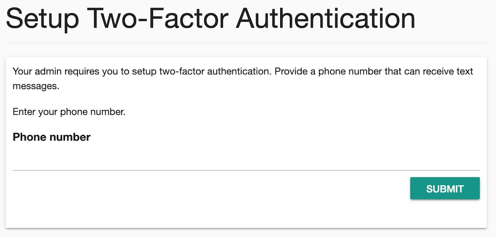 Users who are part of an organisation requiring Two Factor Authentication (2FA) must confirm their logins using a security code sent by SMS to a mobile phone. The instructions below provide a step by step overview for setting up your account.
