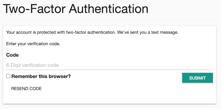 When logging in you will be presented with the screen below. If you are accessing the Logwise system from a trusted device you can click "Remember this browser" to avoid requiring a sms code on every log in.